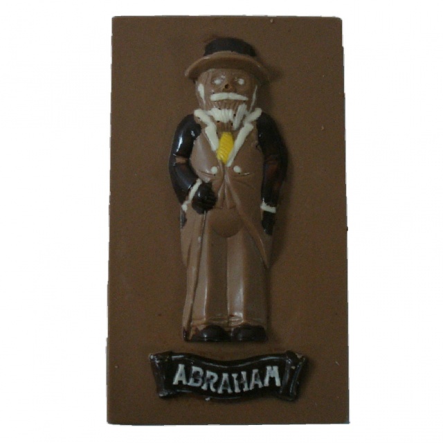 Origineel kado voor een man die 50 jaar wordt, deze chocolade Abraham in kadoverpakking. Afmeting: 21 cm (ca. 425 gram)