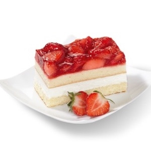 Heerlijk gebakje wat zowel gluten als lactose vrij is! Wener cake plakjes met een vulling van cheesecake en bedekt met aardbeie.